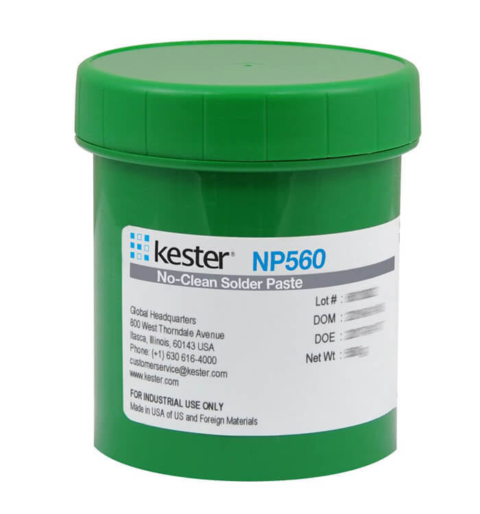NP560 residues are non-conductive, non-corrosive, and do not require removal. If it is desired to remove the residues, commercially available residue cleaner may be used. Contact Kester Technical Support for additional assistance.